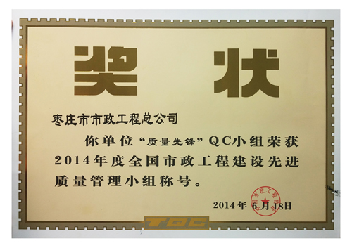 “質(zhì)量先鋒”QC小組榮獲2014年度全國(guó)市政工程建設(shè)先進(jìn)質(zhì)量管理小組稱(chēng)號(hào)
