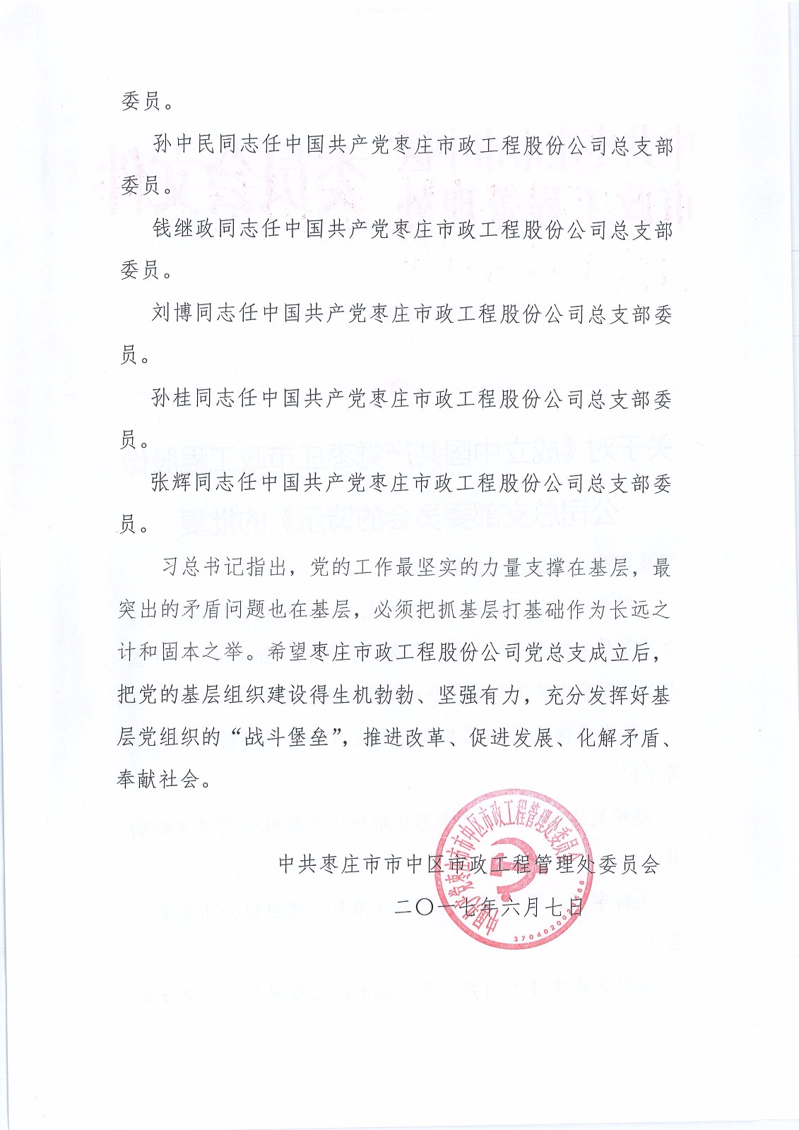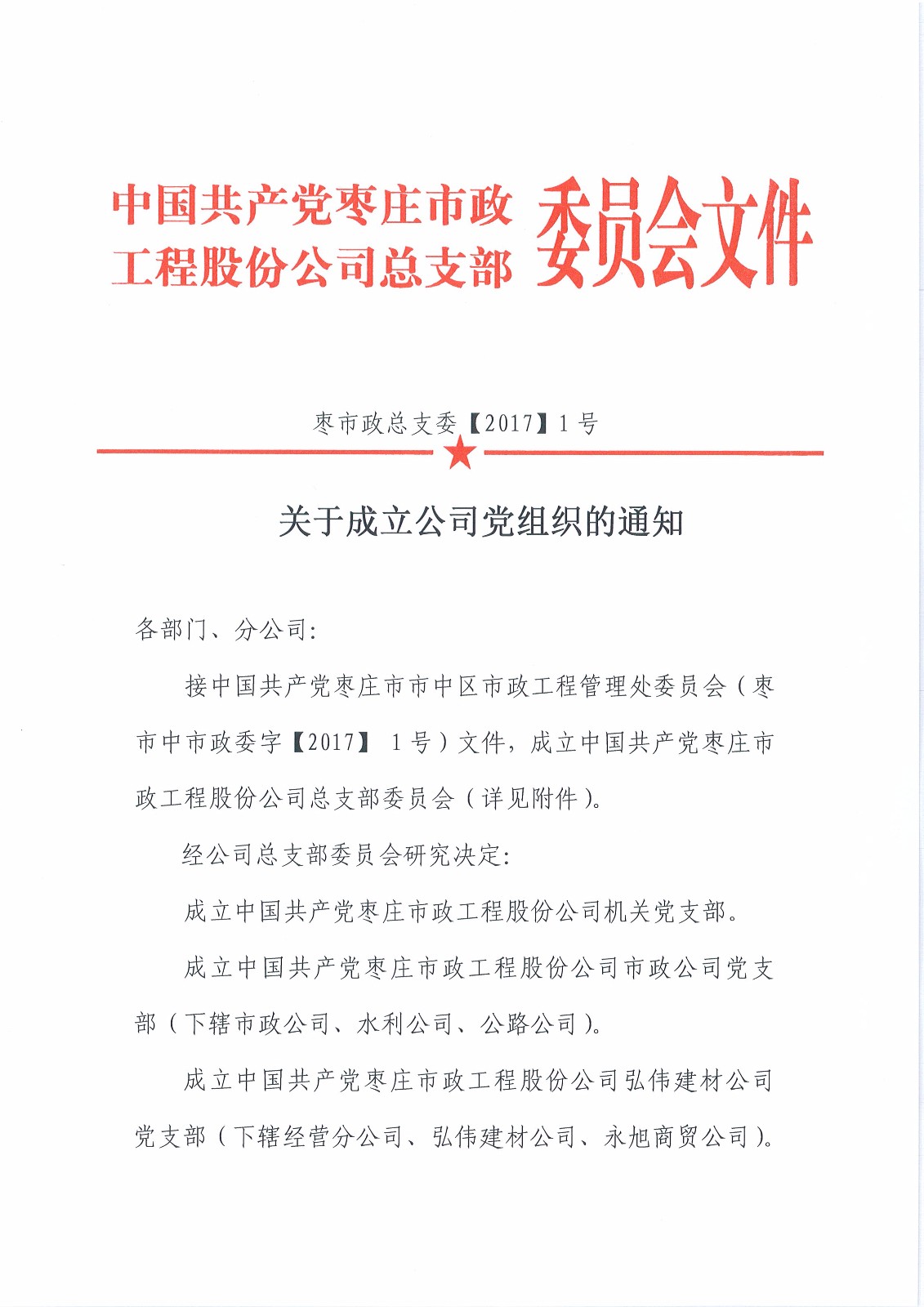 關(guān)于成立公司黨組織的通知