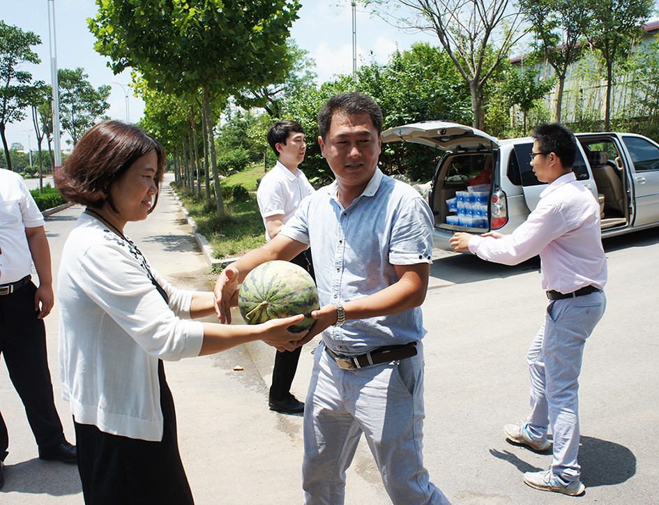 在勝利路、青檀南路、復興路、弘偉建材、機械公司等施工生產(chǎn)現(xiàn)場,夏士泉副總經(jīng)理代表股份公司對各在建工程項目部、生產(chǎn)一線工作人員表示了誠摯的慰問,對高溫酷暑下仍堅守在工作崗位的工作人員表示了衷心的感謝。慰問組每到一處,都與施工人員進行親切交流,仔細詢問施工作業(yè)環(huán)境和工作人員的身體狀況,了解廣大職工的訴求需要,叮囑大家在工作中一定要注意身體,做好高溫下的各項防暑降溫工作,合理安排工作和休息時間,避開高溫露天生產(chǎn)施工,切實做好防暑降溫和安全生產(chǎn)工作。