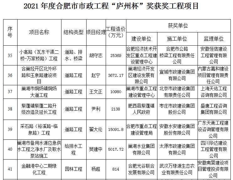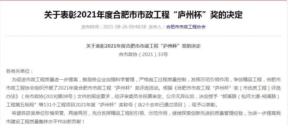 此獎的獲得,是合肥市人民政府、合肥市市政工程協(xié)會對集團公司承建工程質量的充分肯定,集團公司將繼續(xù)嚴格把控工程質量,高標準、高要求狠抓項目精細化管理,力爭打造更多優(yōu)質工程。