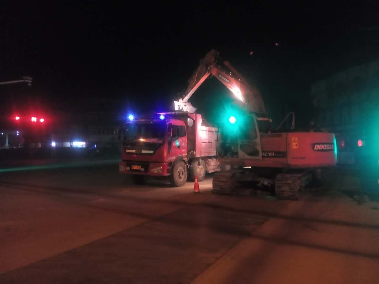 由于該工程緊靠利民批發(fā)市場(chǎng)、鋼材批發(fā)市場(chǎng)及香港街等大型物資集散地,車流、人流量大,沿線營(yíng)業(yè)門市眾多,本就狹窄的道路無法提供有效的工作寬度。項(xiàng)目管理人員根據(jù)工地現(xiàn)狀,制定了白加黑的施工方案。在白天正常施工的同時(shí),將開挖裝車、商砼澆筑等對(duì)工作寬度要求高的工序放在晚上進(jìn)行。